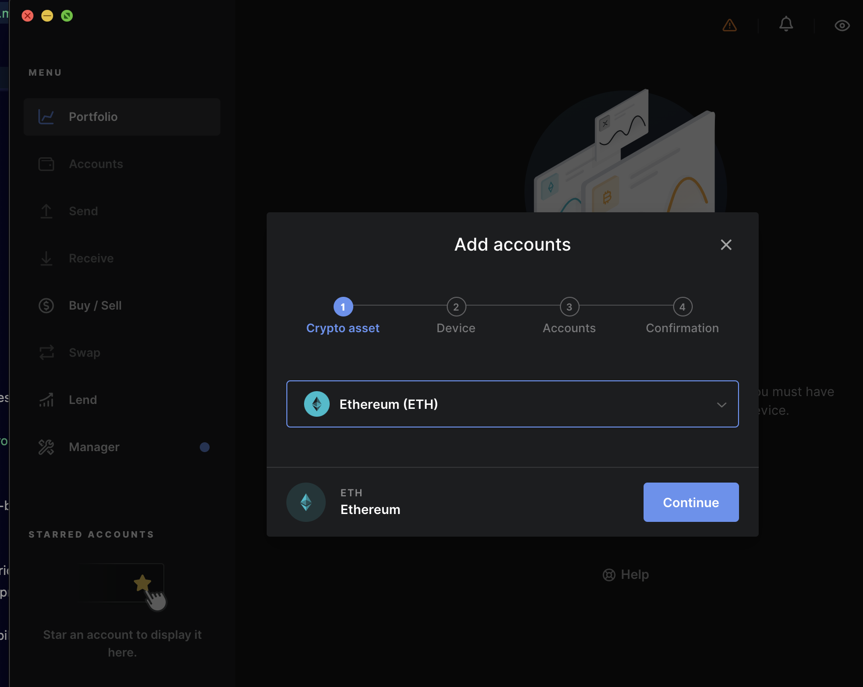 Start Ethereum application on your wallet.